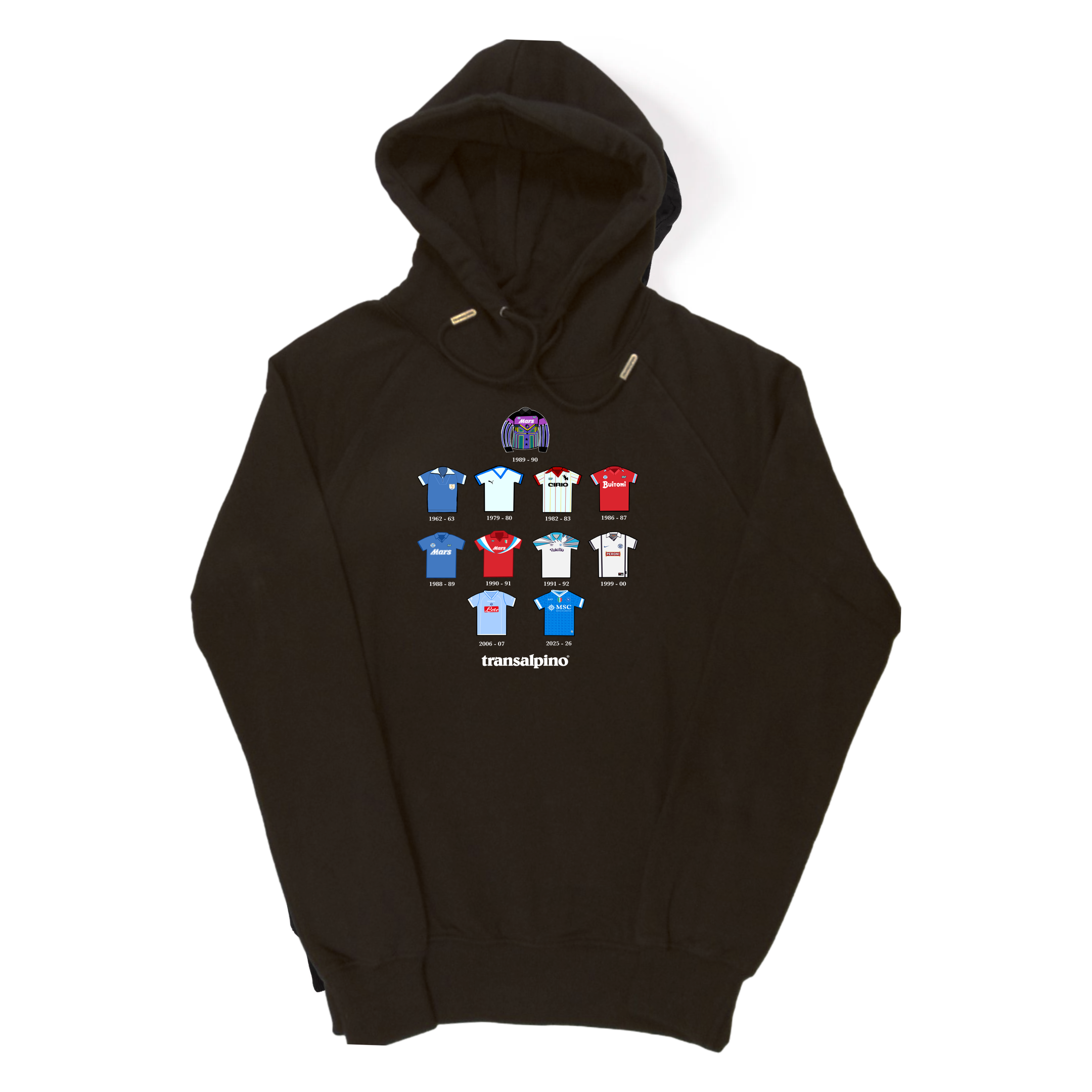 A premium hooded sweat featuring set in sleeves, front Kangaroo pocket, logo embossed metal hood pulls, heavy weight brushed 3 ply 280g cotton and even has one of them clever hole and loop thingy’s for discreet concealment of your phone/pod leads.