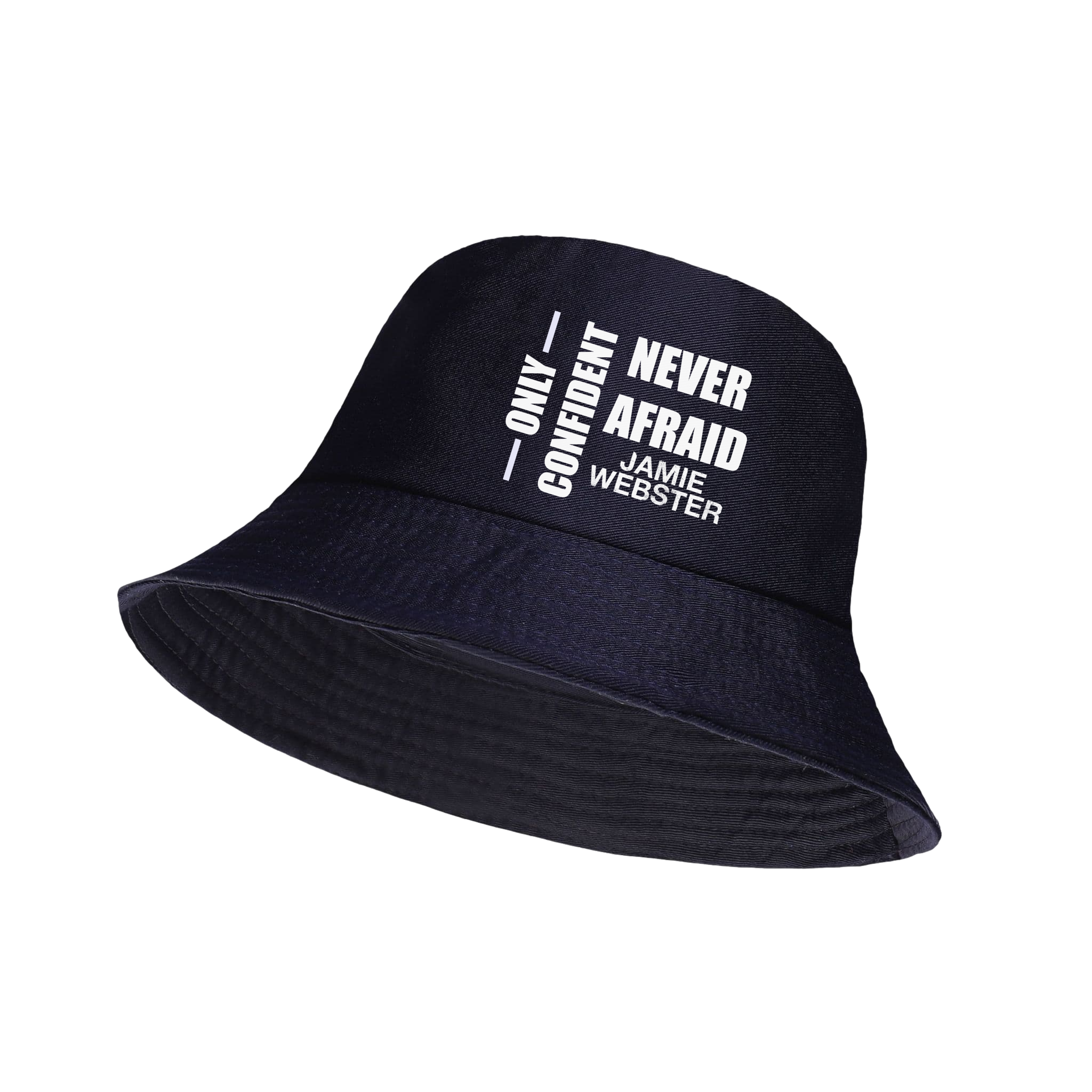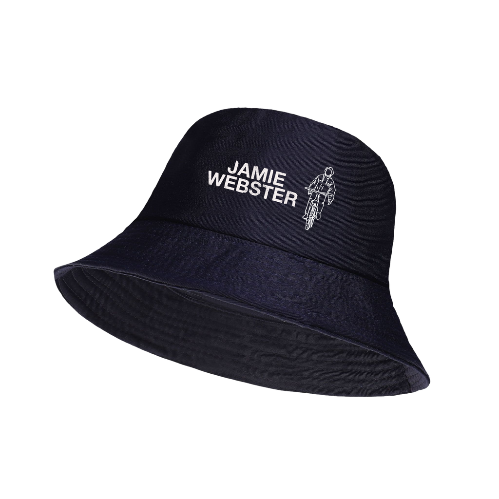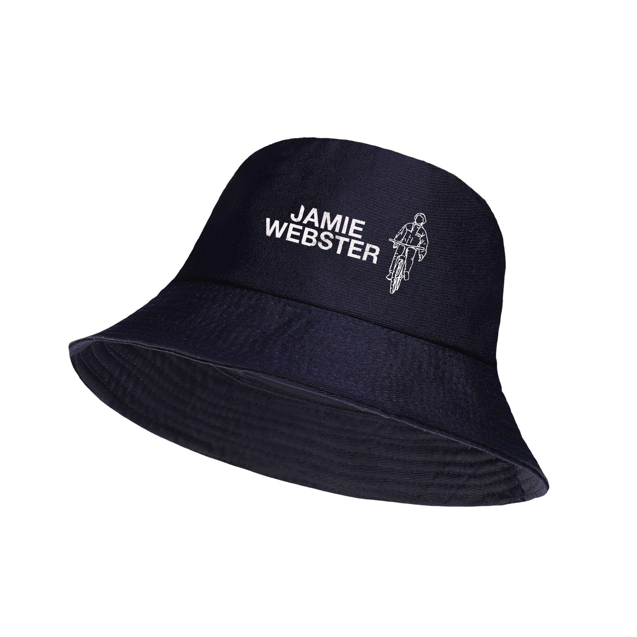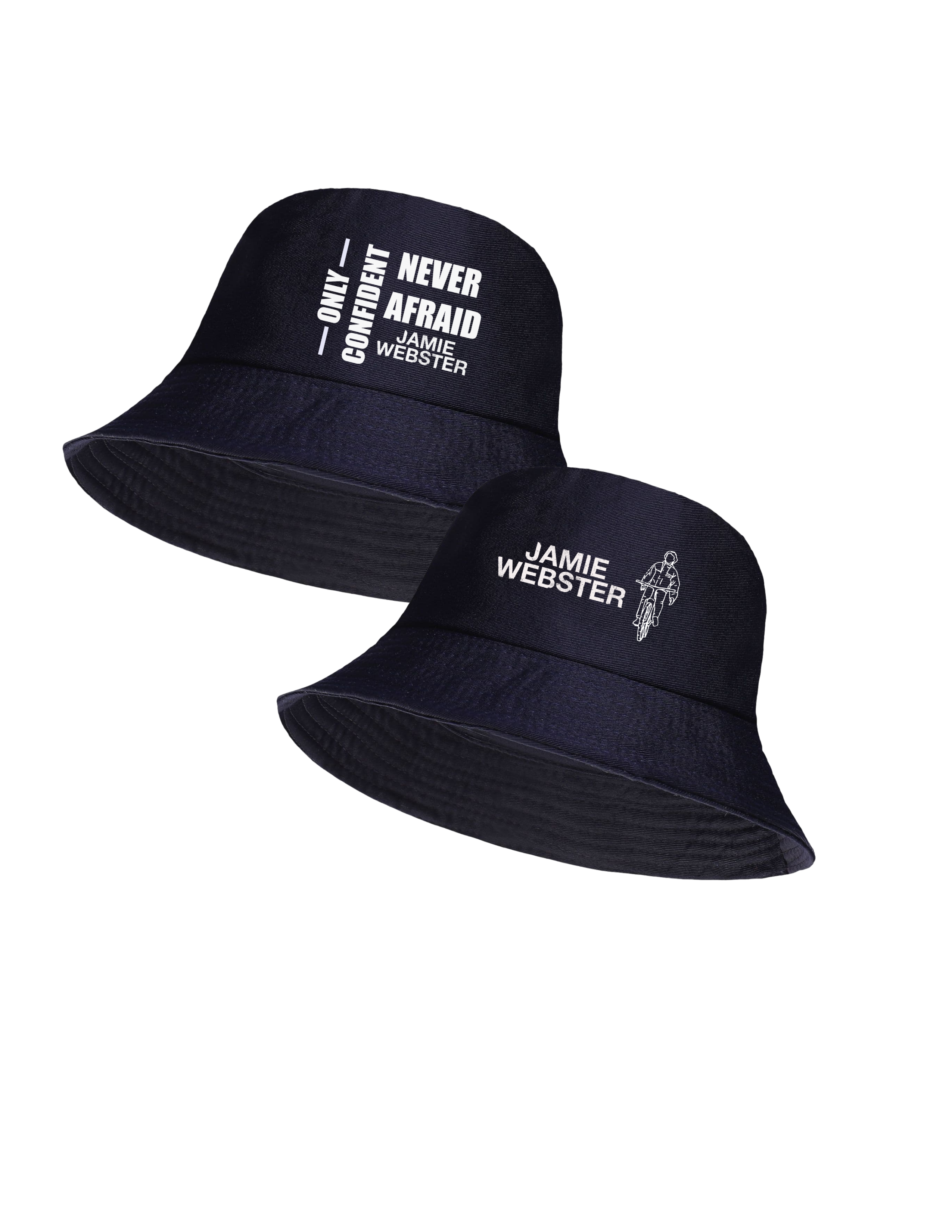 Reversible bucket hat with two different logos, Jamie Webster bike logo and Weekend In Paradise quote.